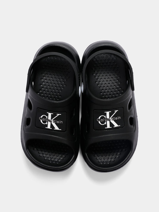 Sandali neri per bambini con logo