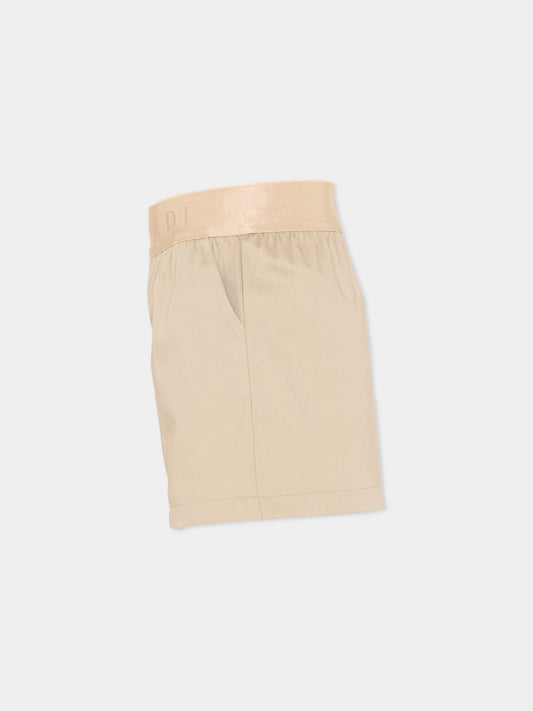 Gonna beige per bambina con logo