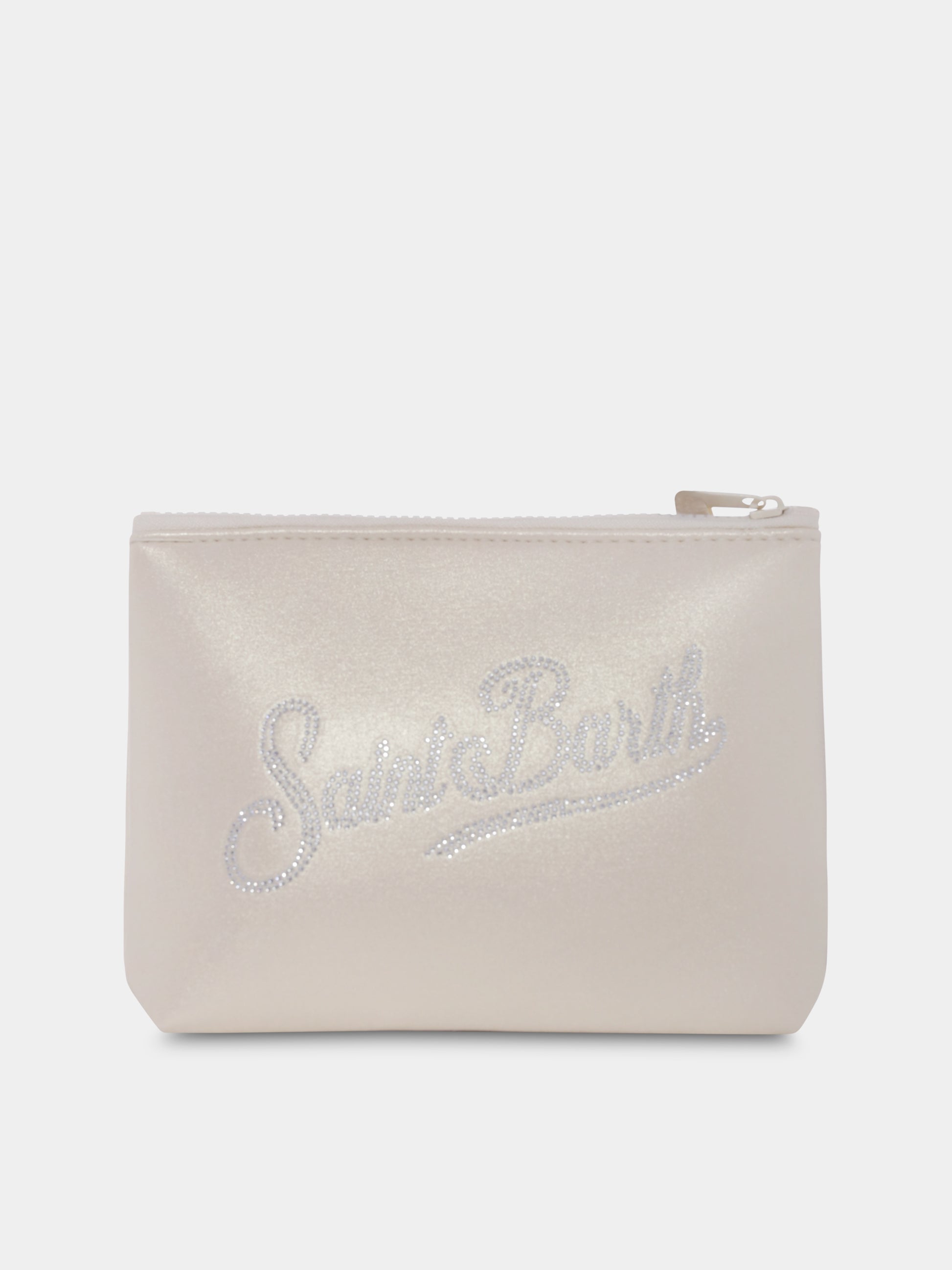 Beige clutch bag for girl with logo