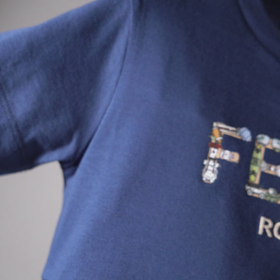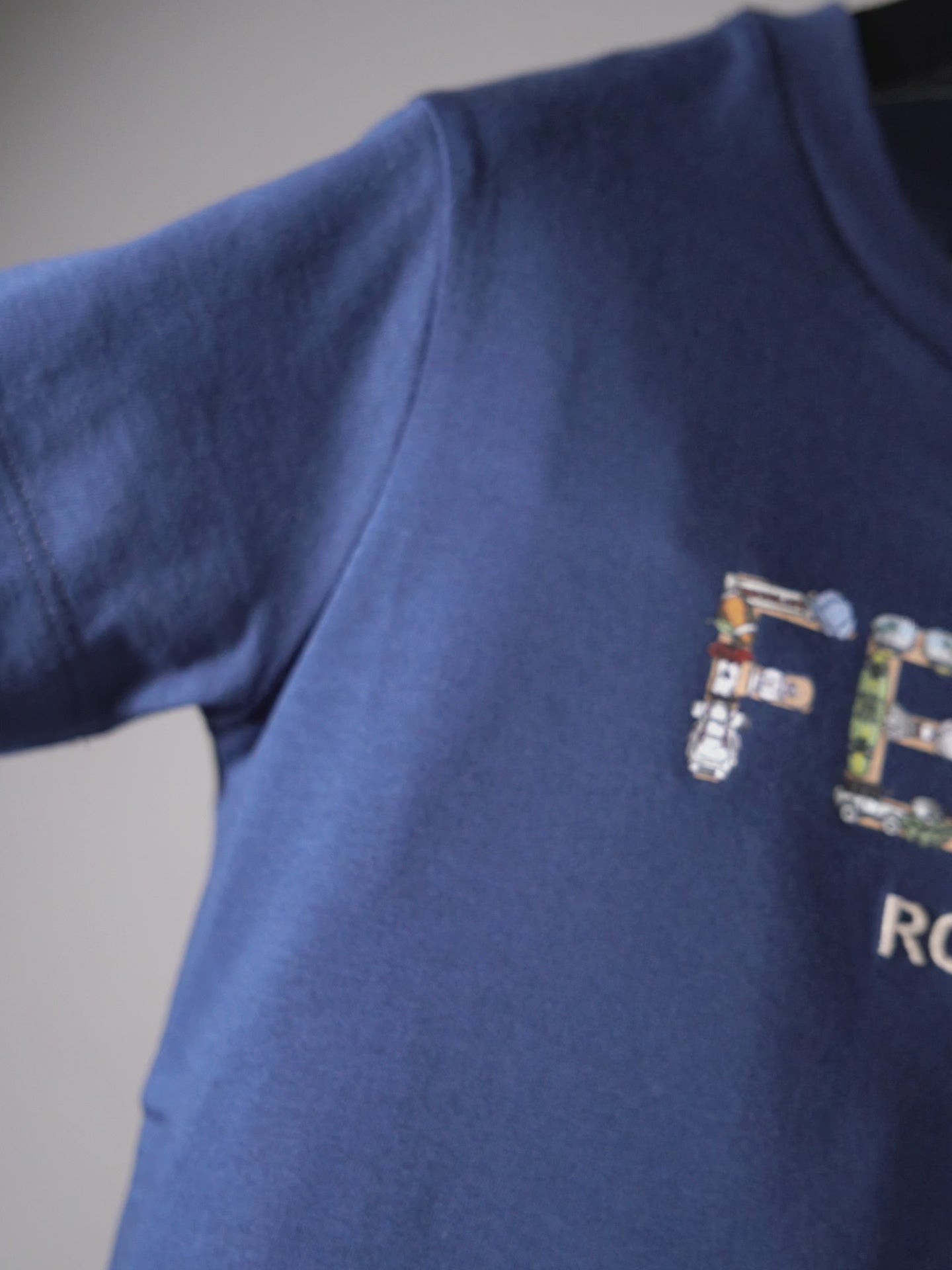 Colore: Blu Descrizione: T-shirt blu, a girocollo con maniche corte, realizzata in jersey di cotone; è decorata, sulla parte anteriore, con logo Fendi stampato con micro elementi, che richiamano il mondo dell'avventura all'aria aperta e dello sport, e la città di fondazione del brand, Roma, ricamto in beige. Made in Italy Dettagli: 100% Cotone. lavare in lavatrice a 30°C.
