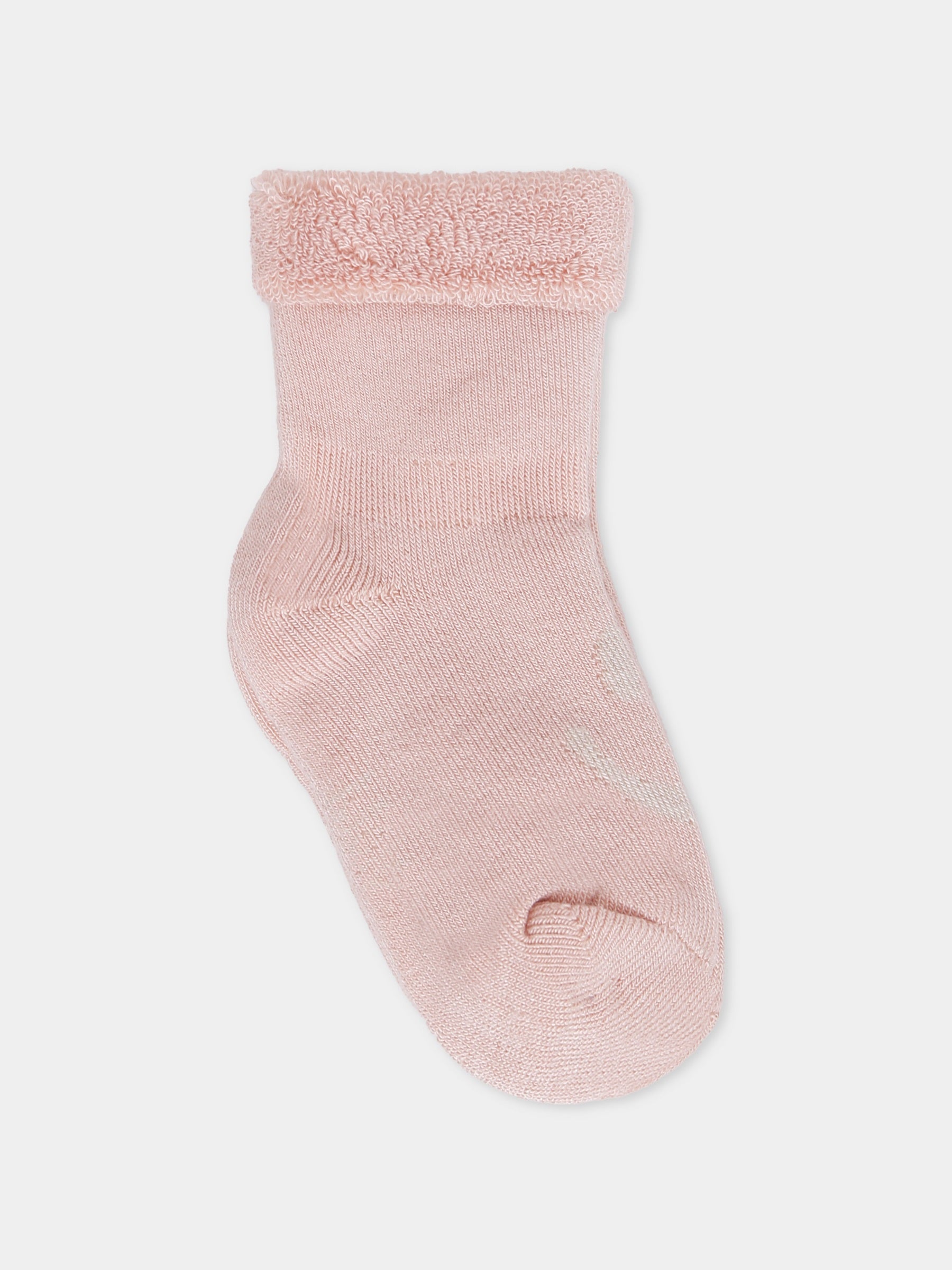 Colore: Rosa Descrizione: Set calzini rosa in spugna, composto da due paia, rosa e beige, con risvolto. Calzini rosa con smile sulla parte anteriore; calzini beige con smile all-over. Dettagli: 80% Viscosa, 17% Poliammide, 3% Elastan. Lavare a 40°C.