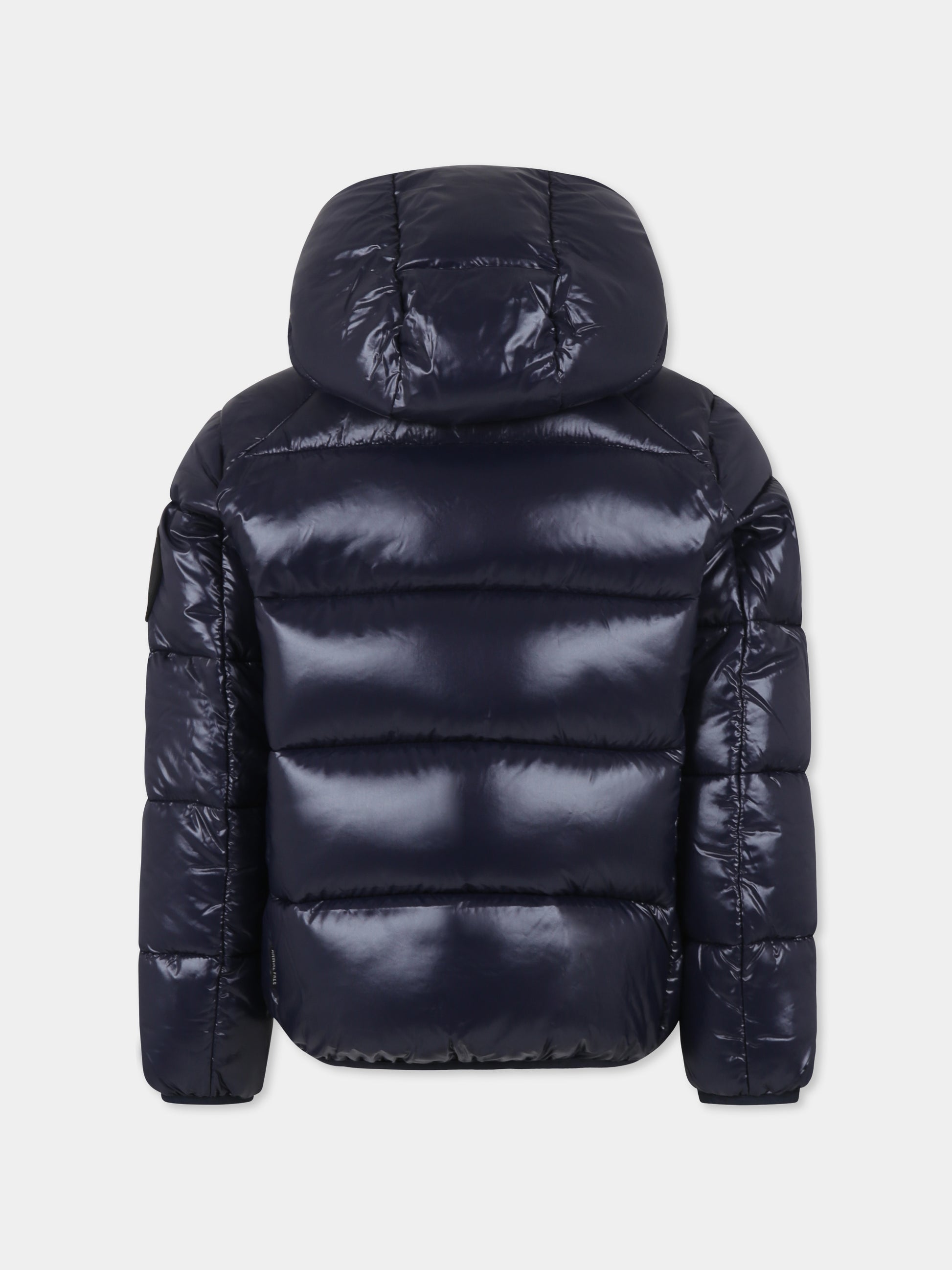Blue down jacket for boy with logo
