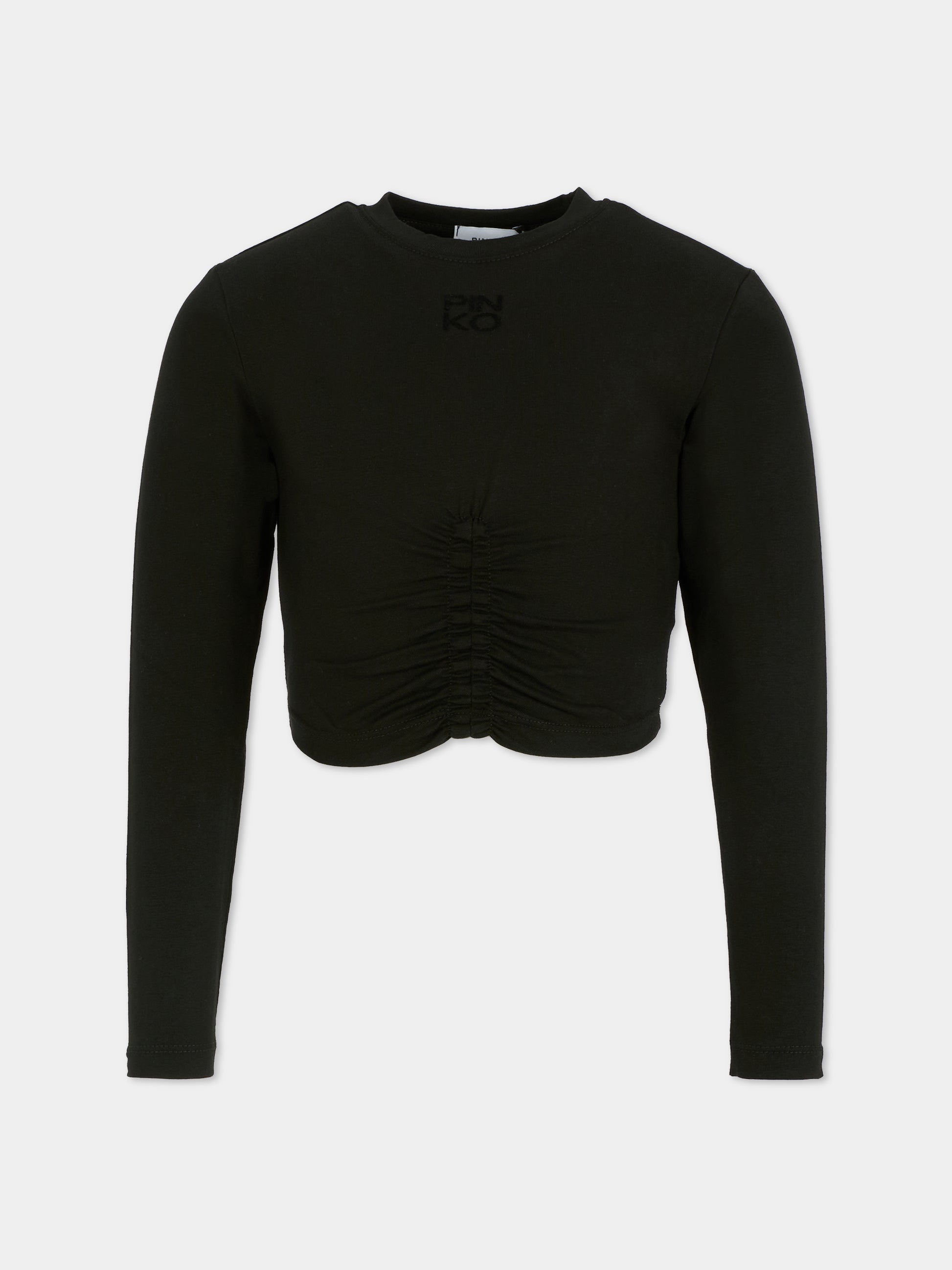Black crop t-shirt for girl with logo