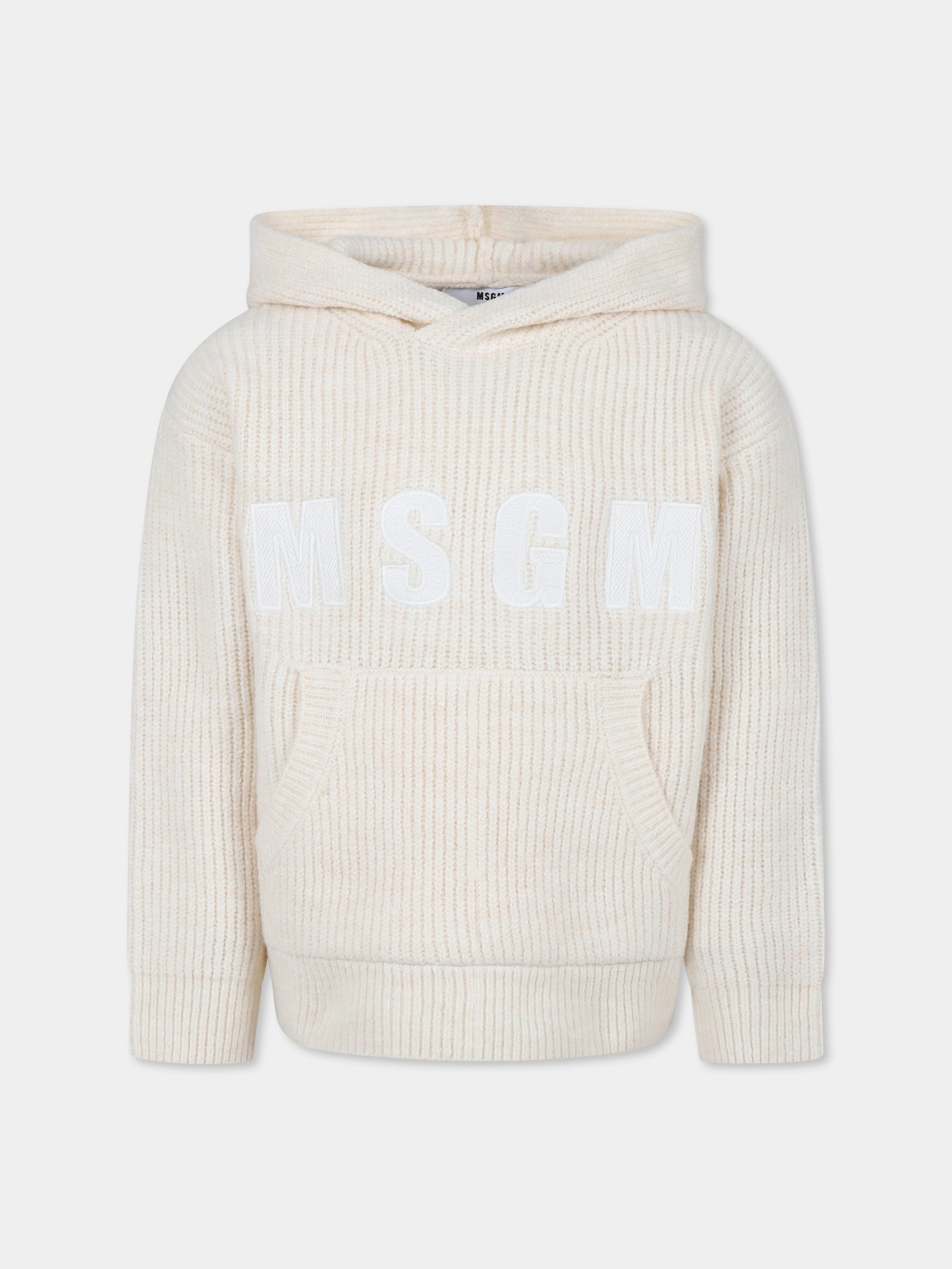 Colore: Avorio Descrizione: Maglione avorio a maniche lunghe, con cappuccio e tasca frontale. È decorato con logo MSGM bianco ricamato sulla parte anteriore. Dettagli: 68% Acrilico, 29% Poliestere, 3% Spandex. Lavare a 30°C.