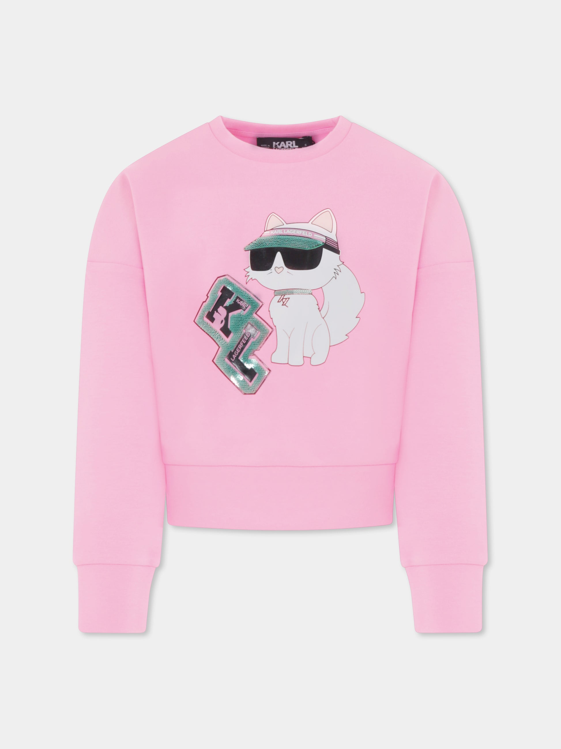 Pink crop sweatshirt for girl with Choupette