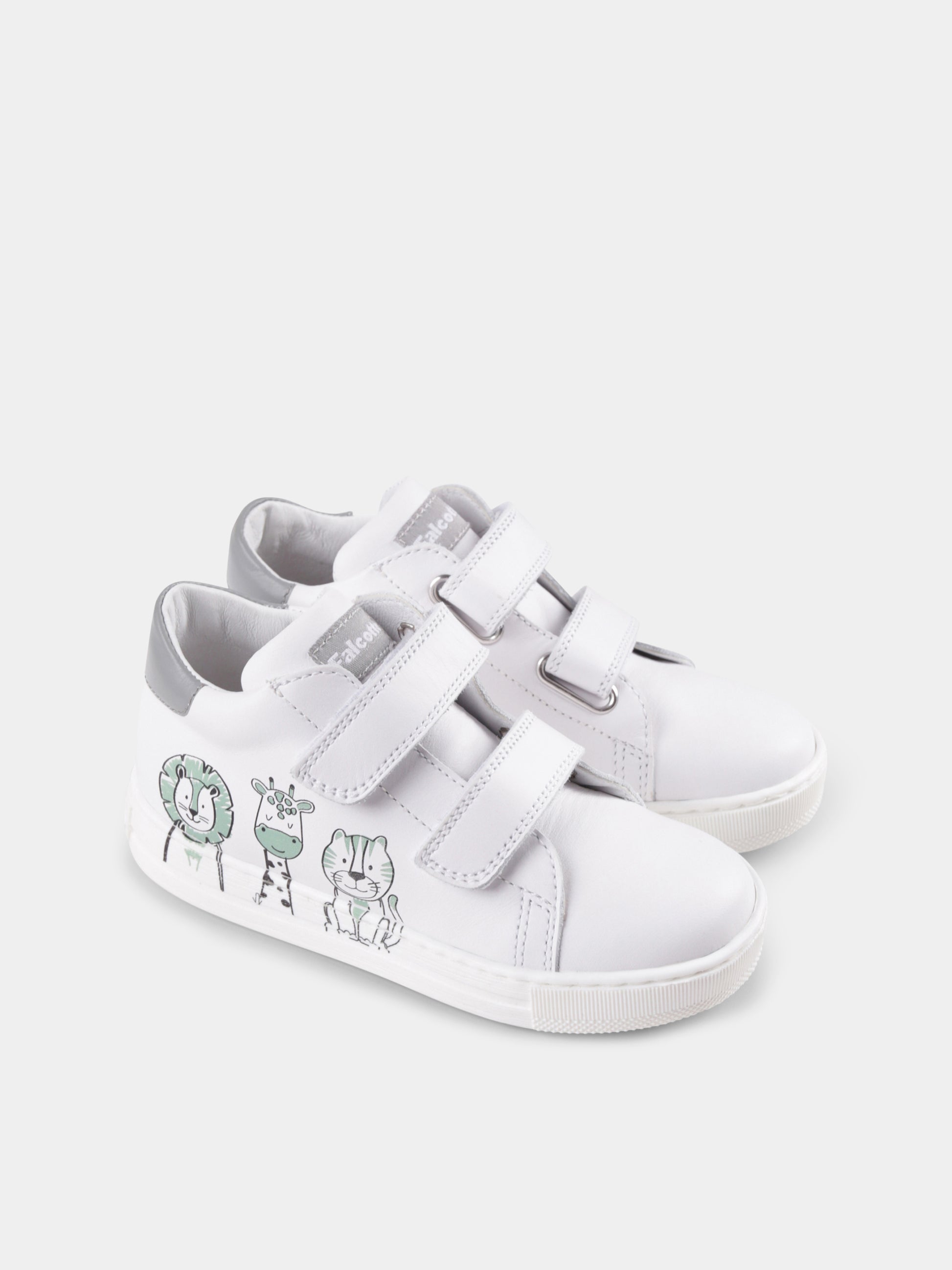 White sneakers for babykids and kids with animals