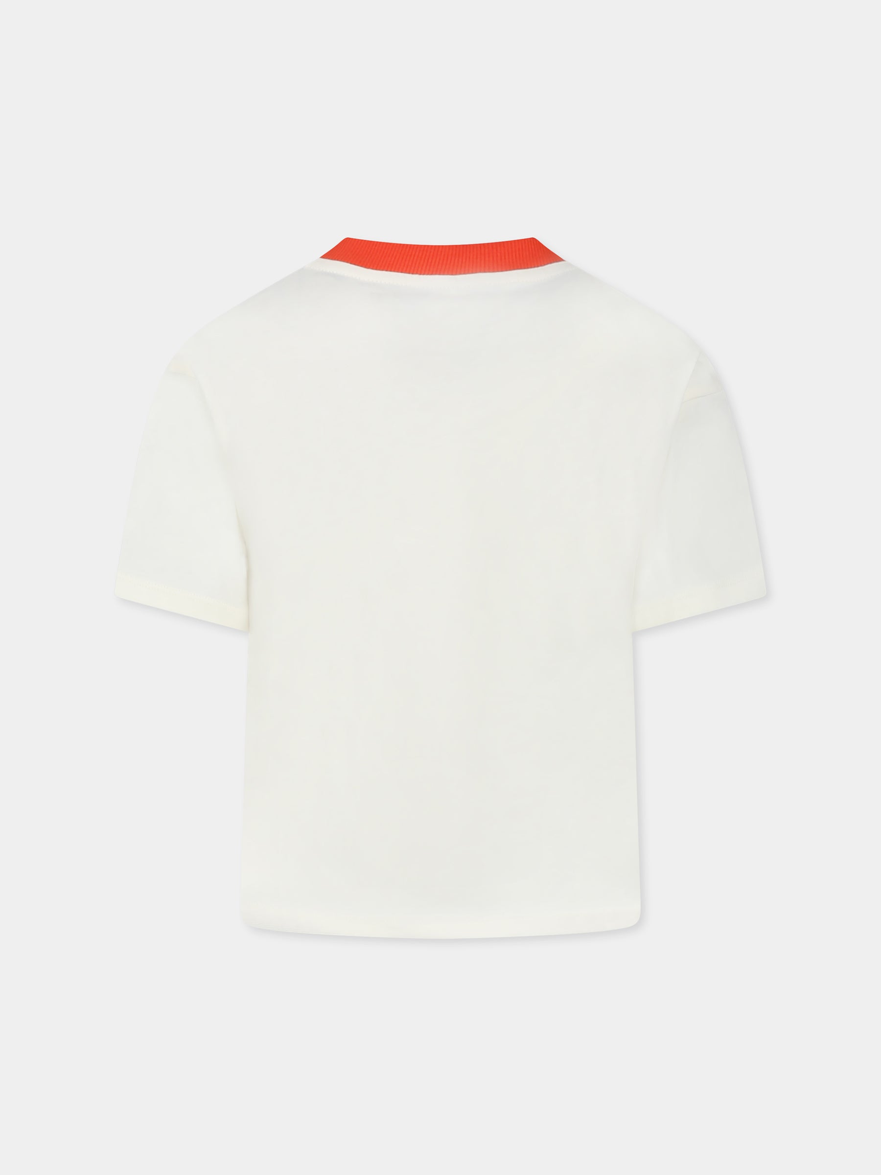 Colore: Avorio Descrizione: T-shirt avorio in cotone organico, con maniche corte e scollo a V rosso a costine. È decorato con stampa gatti multicolor sulla parte anteriore. Dettagli: 100% Cotone organico. Lavare a 40°C.