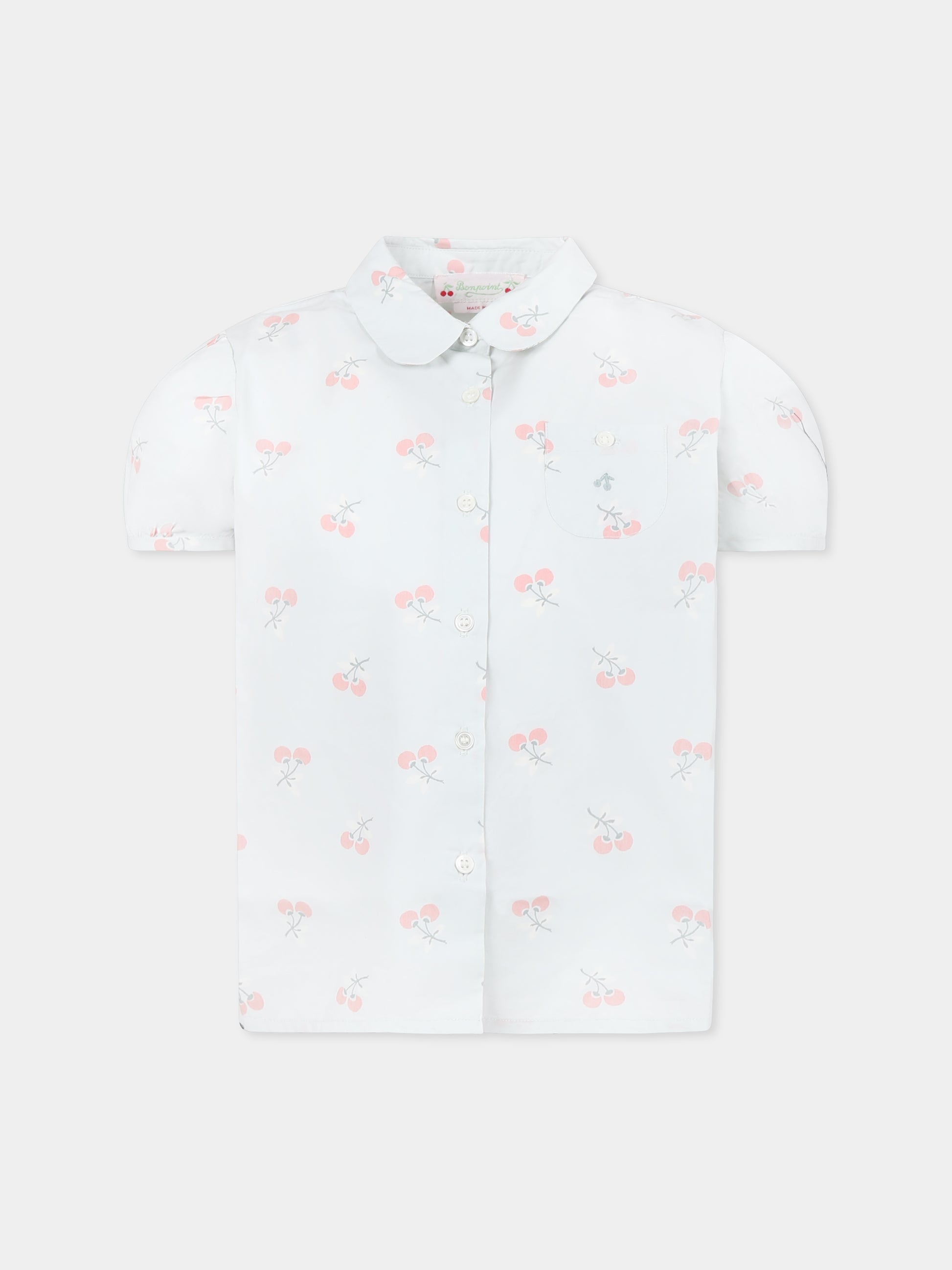 Light blue shirt for girl with cherries