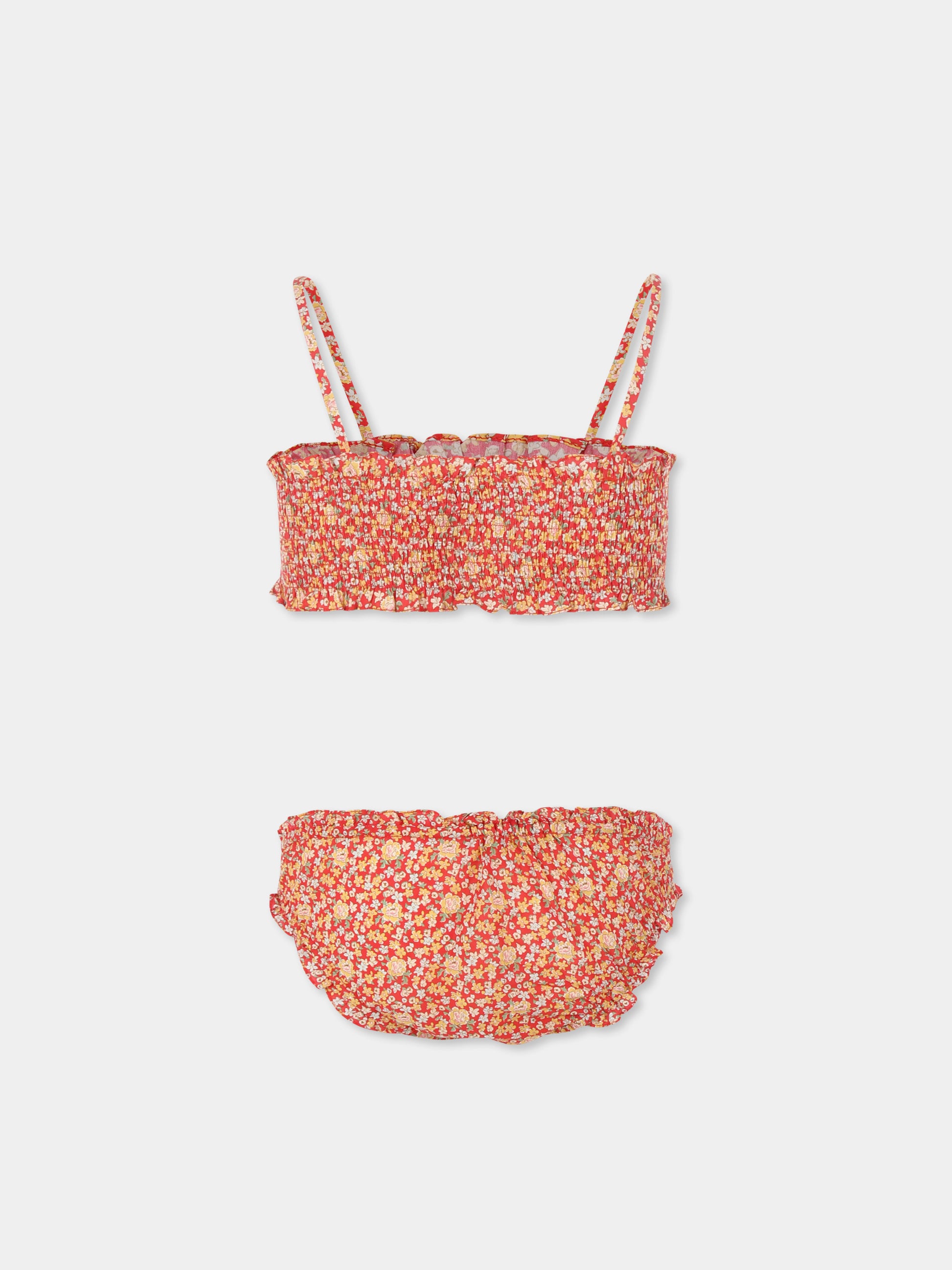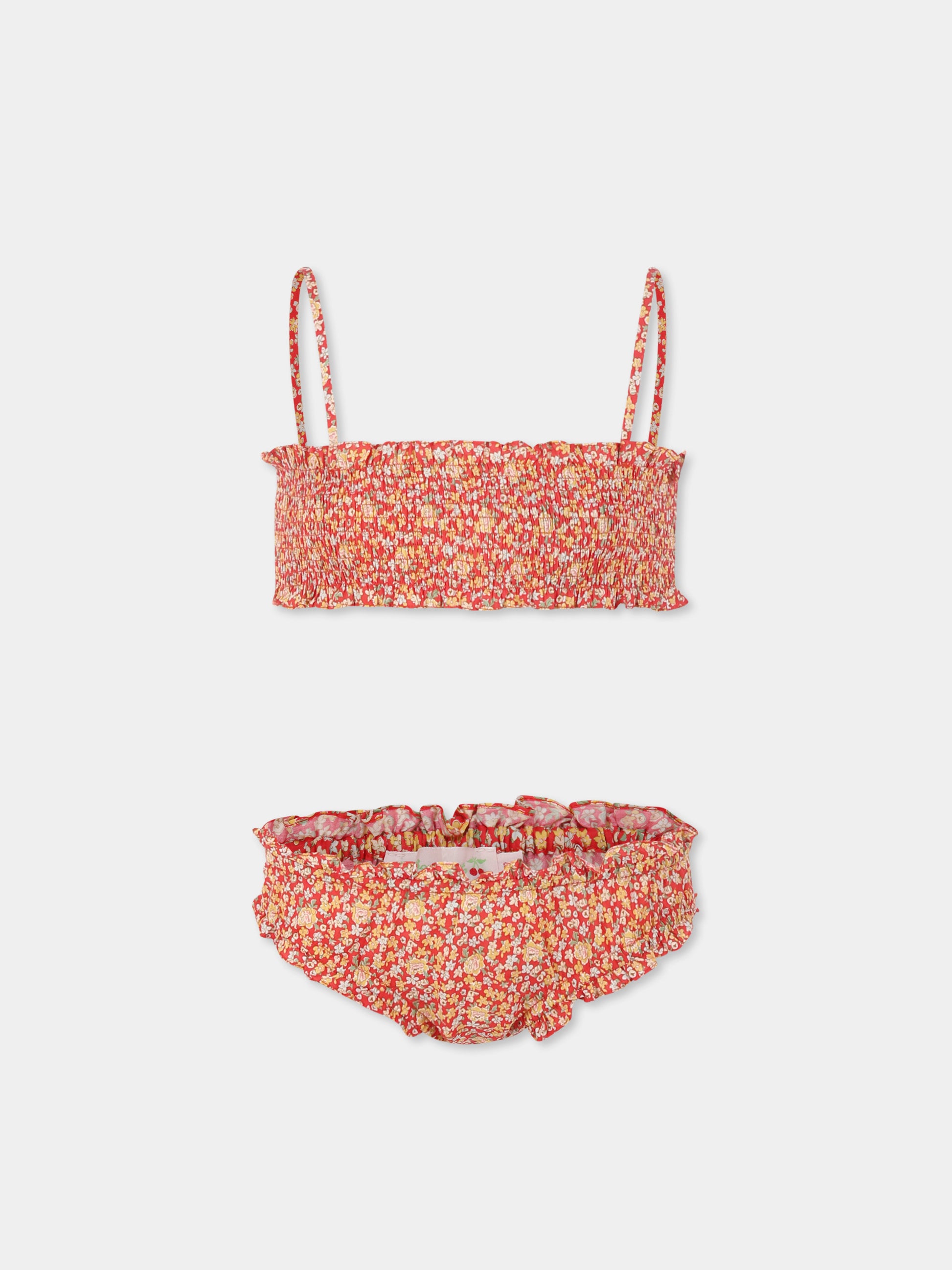 Colore: Rosso Descrizione: Bikini rosso in tessuto liberty, composto da top e slip; realizzato in cotone. Top elasticizzato con spalline e slip con vita elasticizzata. È decorato con stampa floreale all-over. Dettagli: 100% Cotone. Lavare a 30°C.
