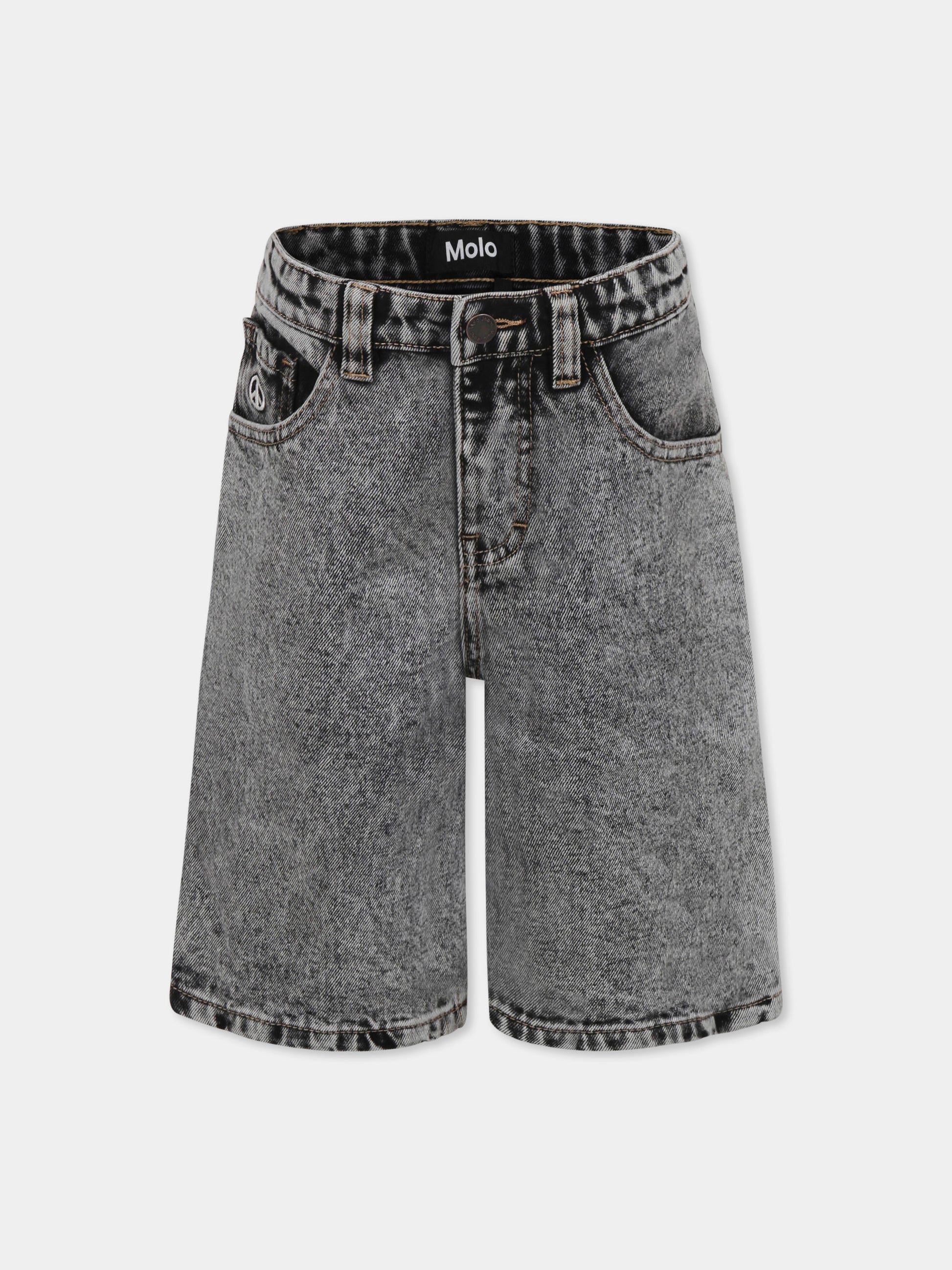 Colore: Grigio Descrizione: Shorts grigi cinque tasche, in misto cotone organico, con passanti per cintura, chiusura frontale con zip e bottone automatico, vita regolabile grazie ad elastico interno con bottoni. Sono decorati con simbolo della pace ricamato sulla parte anteriore e patch logata sul retro. Dettagli: 35% Cotone organico, 34% Cotone, 19% Poliestere, 12% Viscosa. Lavare a 30°C