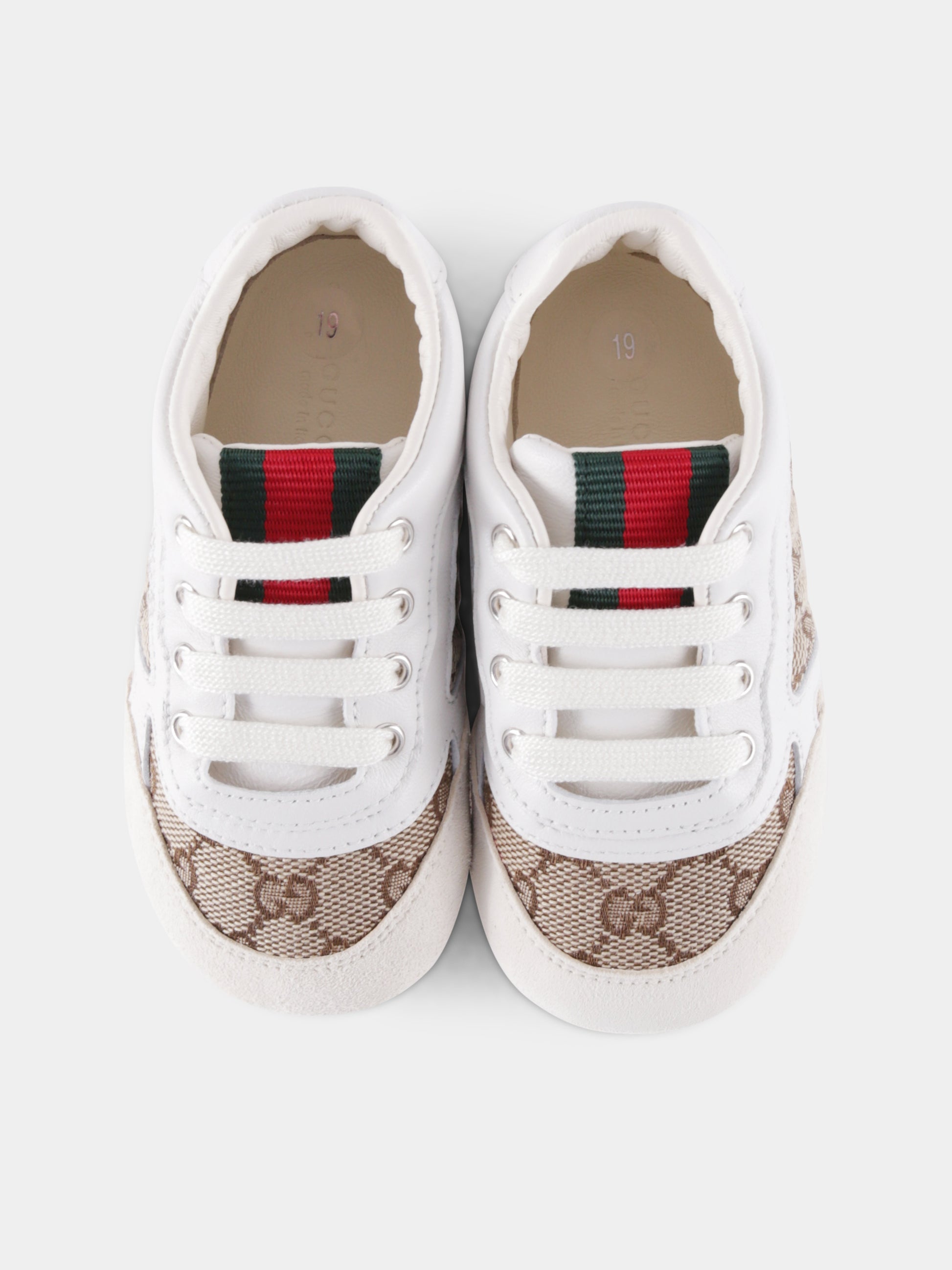 Colore: Bianco Descrizione: Sneakers bianche Re-Web realizzate nell'iconico tessuto Original GG abbinato a finiture in pelle bianca, con lacci sulla parte superiore. Sono decorate con iconico dettaglio Web rosso e verde sulla parte superiore e logo laterale. Made in Italy. Made in Italy Dettagli: 50%Tessuto. 50%Pelle.