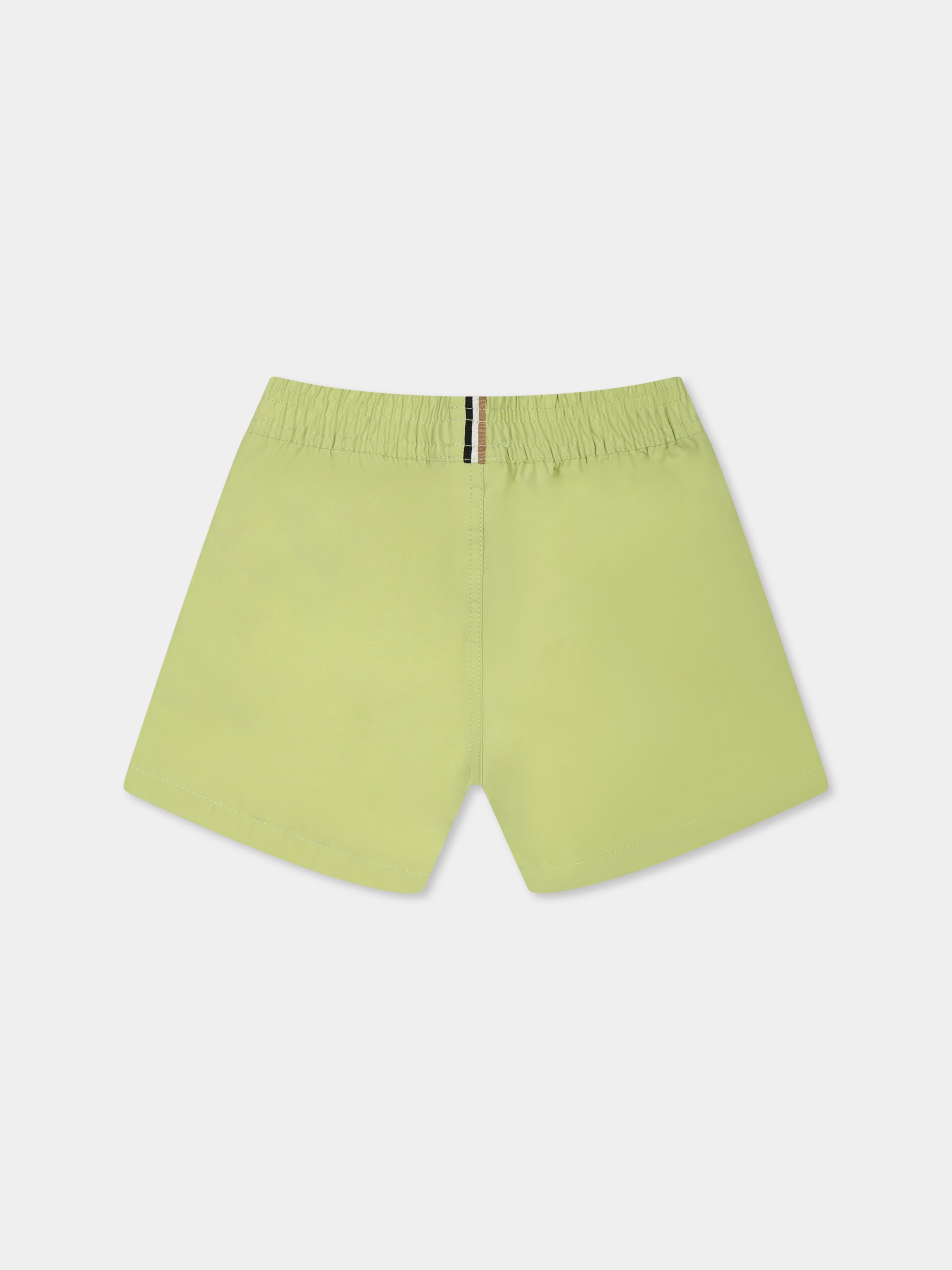 Green swim shorts for baby boy with logo